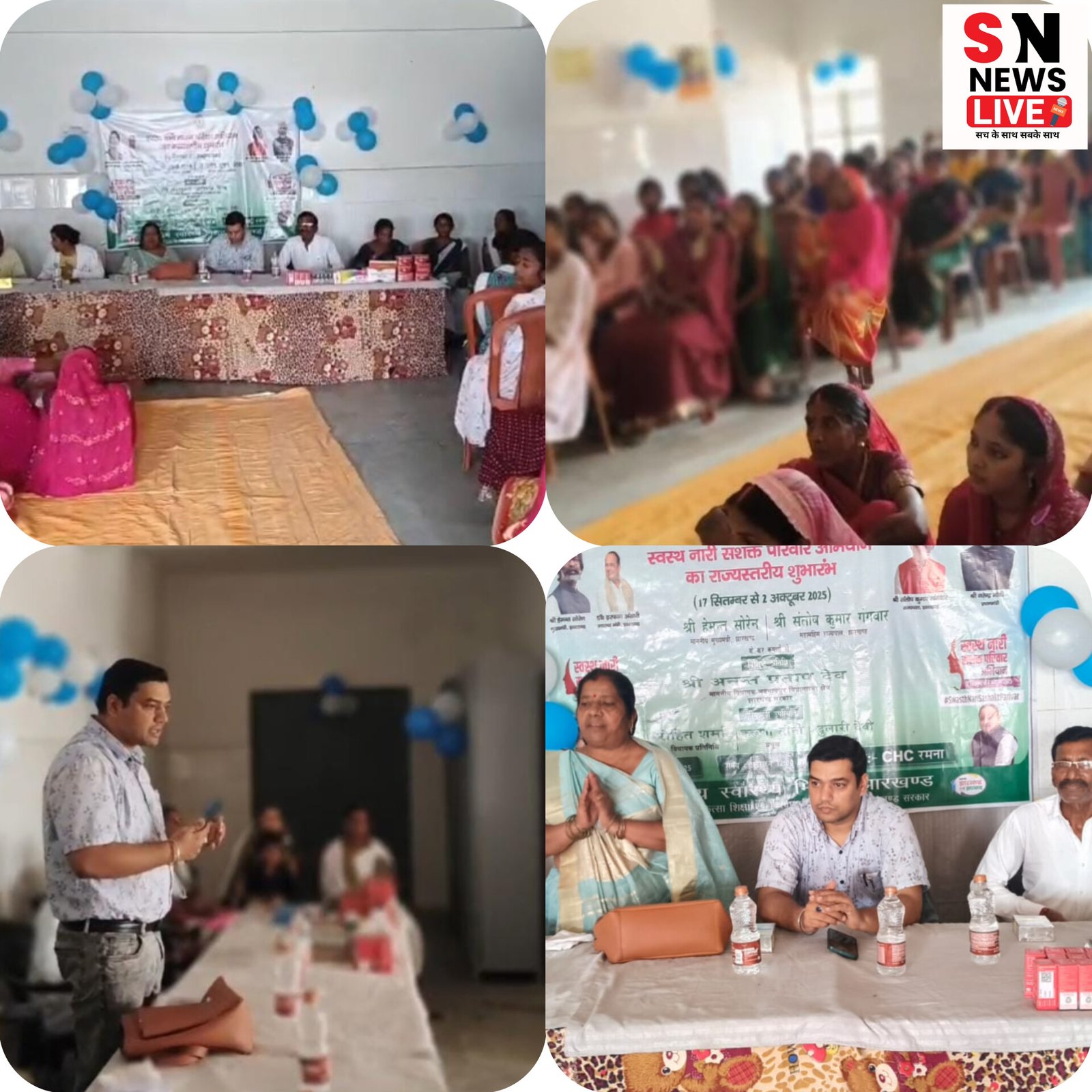 स्वास्थ्य सुविधाओं में होने वाली महिलाओं की समस्याओं के लिए पूरे देश में स्वास्थ नारी सशक्त परिवार अभियान 17 सितंबर से 2 अक्टूबर 2025 तक चलाया जा रहा है इस कार्यक्रम के अंतर्गत रमना प्रखंड के सभी स्वास्थ्य केन्द्रो में निःशुल्क महिलाएं किशोरियों और बच्चों को स्वास्थ्य संबंधित जानकारी जांच और उपचार किया जाएगा।