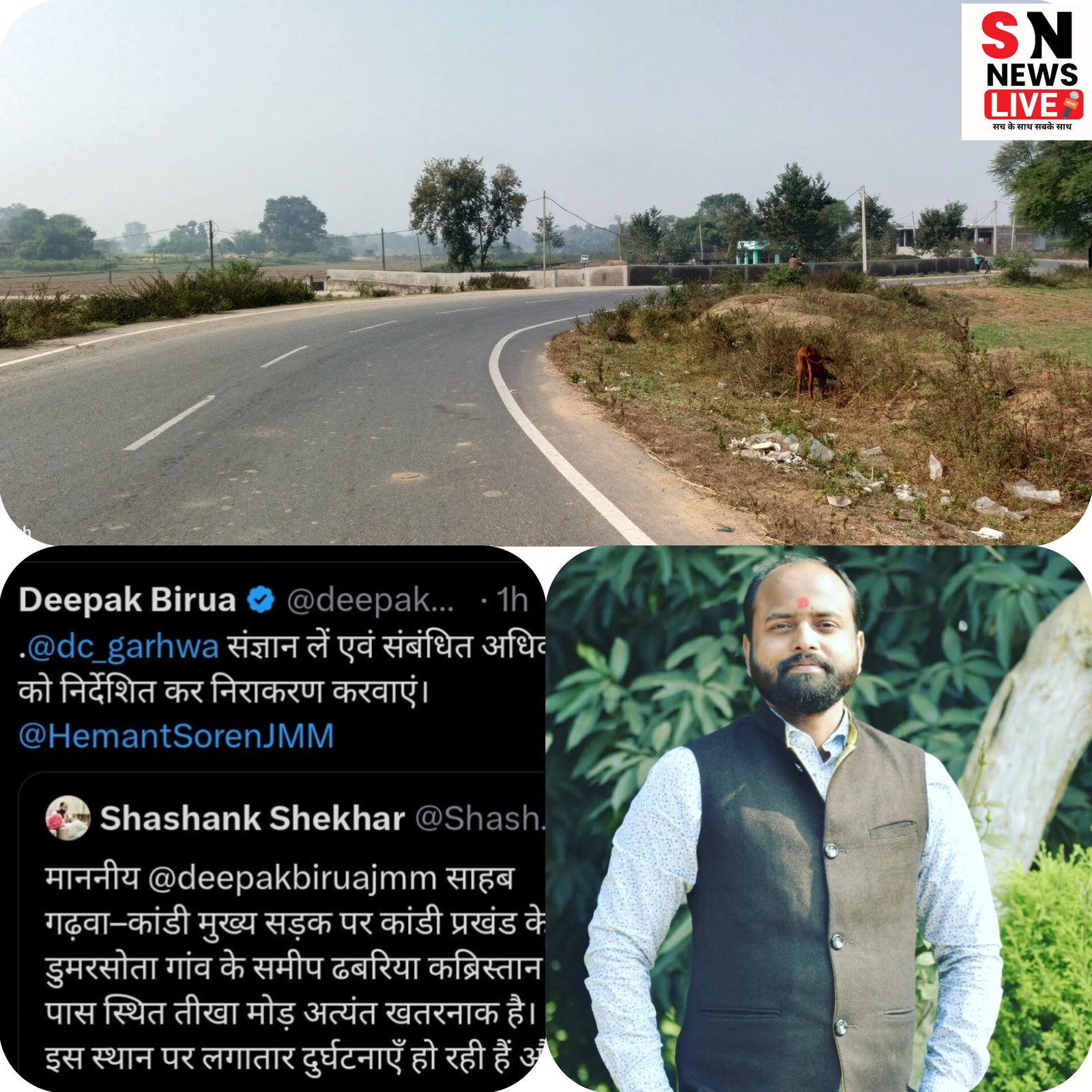 कांडी: प्रखंड क्षेत्र अंतर्गत गढ़वा- कांडी मुख्य सड़क पर डुमरसोता गांव के समीप ढबरिया कब्रिस्तान के पास स्थित तीखा मोड़ लंबे समय से दुर्घटनाओं का कारण बना हुआ है। इस खतरनाक मोड़ पर लगातार हो रही सड़क दुर्घटनाओं में कई मौतें तक हो चुकी है। जिसको लेकर दृष्टि यूथ ऑर्गेनाइजेशन के प्रधान सचिव सह सामाजिक कार्यकर्ता शशांक शेखर द्वारा सड़क परिवहन मंत्री एवं झारखंड सरकार के मंत्री दीपक बिरुआ से आग्रह किया गया था।