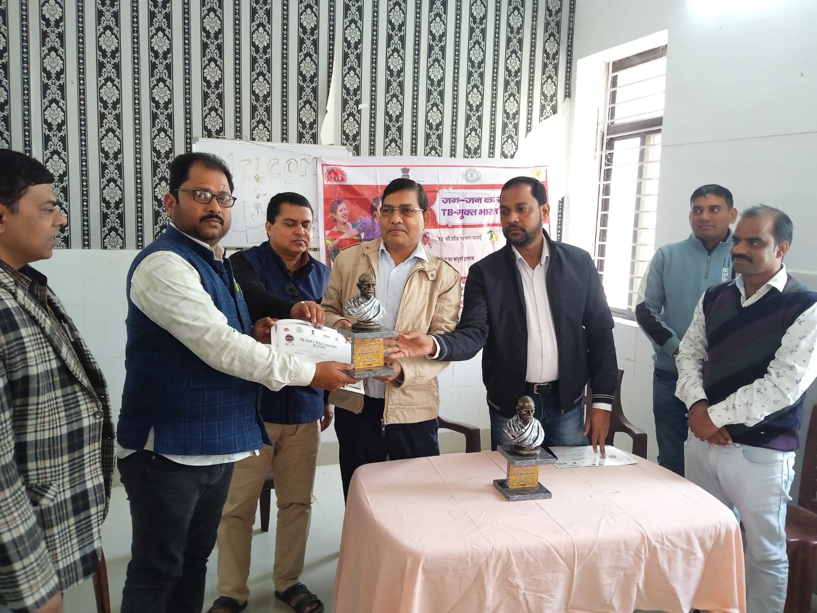 टीवी मुक्त भारत अभियान के तहत मझिआंव रेफरल अस्पताल में बुधवार को 8 पंचायत के मुखिया को प्रशस्ति पत्र एवं महात्मा गांधी का मूर्ति देकर सम्मानित किया गया है। जिसमें मझिआंव प्रखंड के पांच पंचायत एवं कांडी के तीन पंचायत के मुखिया का नाम शामिल है।