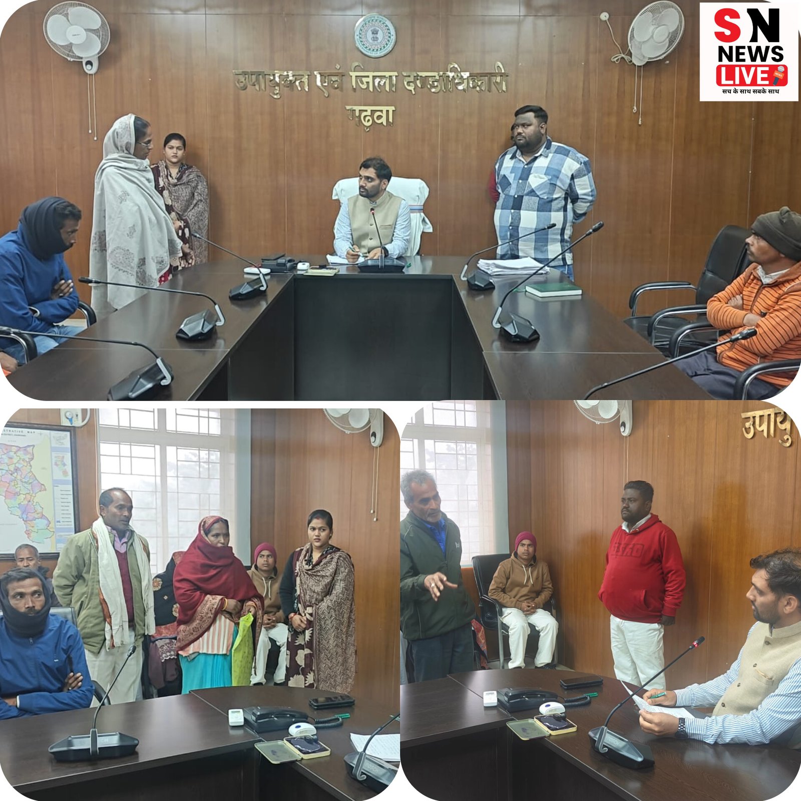गढ़वा उपायुक्त-सह-जिला दंडाधिकारी श्री दिनेश यादव की अध्यक्षता में आज नये समाहरणालय सभागार में जनसुनवाई कार्यक्रम का आयोजन किया गया। जनसुनवाई के दौरान जिले के विभिन्न प्रखंडों से बड़ी संख्या में पहुंचे फरियादियों ने अपनी व्यक्तिगत एवं सामूहिक समस्याएं उपायुक्त के समक्ष रखीं।