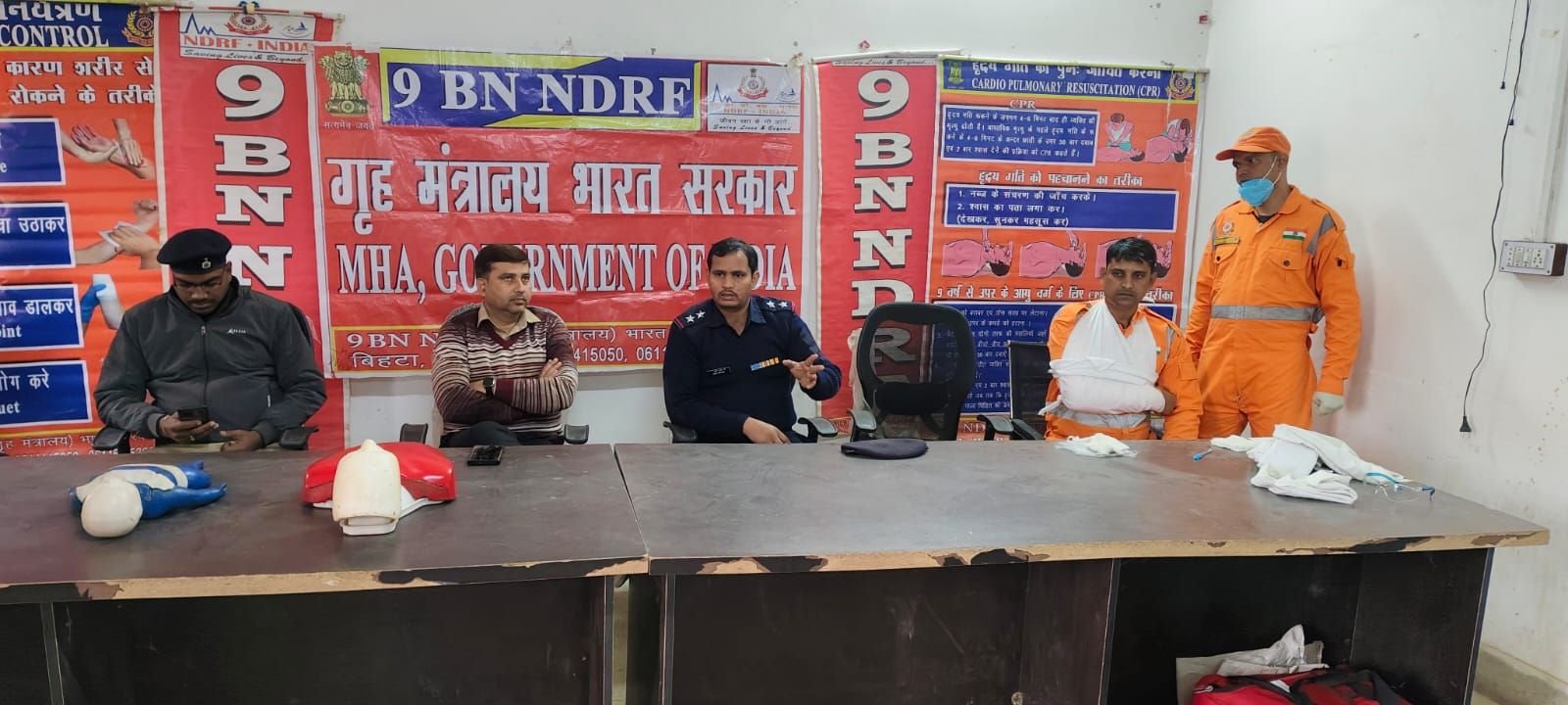 रमना:प्रखंड कार्यालय स्थित सभागार में पटना से आई 9वीं वाहिनी राष्ट्रीय आपदा मोचन बल की टीम ने प्रखंड सह अंचल कर्मियों के साथ आज लोगो को आपदा से बचाव एवं सुरक्षा प्रबंधन का प्रशिक्षण दिया। सब इंस्पेक्टर कवि रंजन शर्मा , सहायक सब इंस्पेक्टर उमेश कुमार, हेड कांस्टेबल गुलशन कुमार के साथ आधा दर्जन से अधिक सहायको ने प्रशिक्षण कार्यक्रम के दौरान भूकंप से बचाव, सीपीआर,