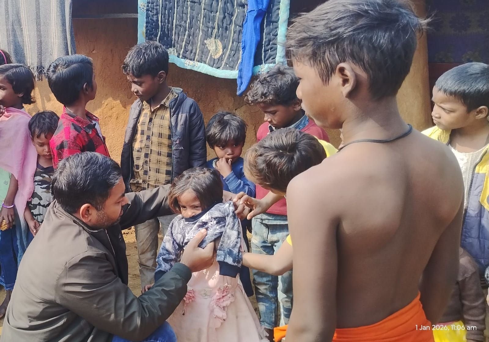 इसके उपरांत गोबरदाहा की मुस्लिम बस्ती में वस्त्र वितरण किया गया, वहीं कार्यक्रम का समापन लोटो गांव के मुसहर टोला में हुआ, जहाँ महादलित परिवारों के बच्चों से लेकर बुजुर्गों तक सभी जरूरतमंदों को गर्म कपड़े प्रदान कर नववर्ष की खुशियाँ पहुँचाई गईं।