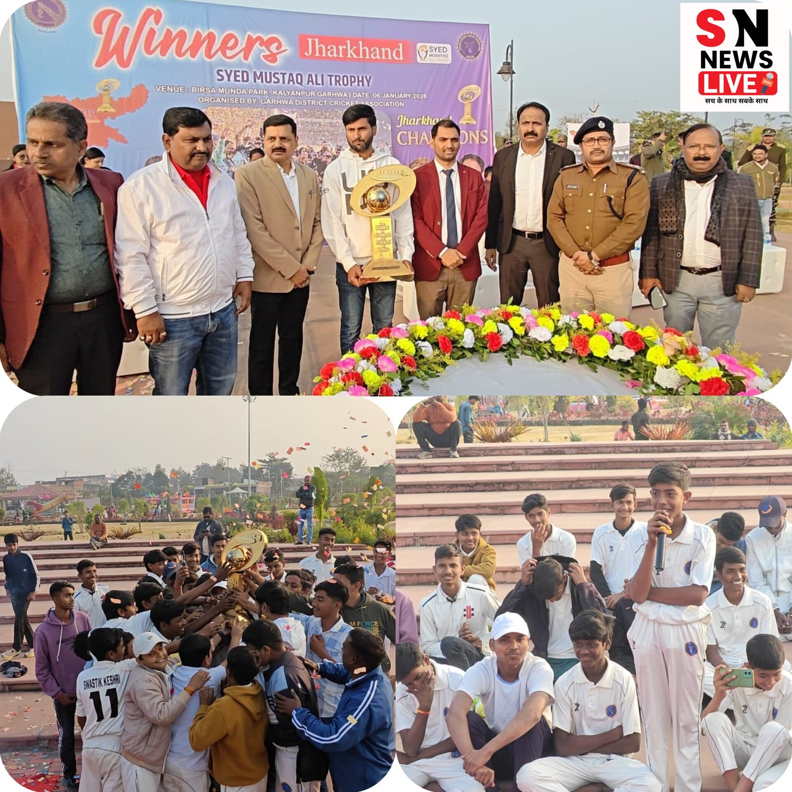 गढ़वा: झारखण्ड क्रिकेट टीम द्वारा सैयद मुस्ताक अली ट्रॉफी जीतने के बाद इस ऐतिहासिक उपलब्धि को पूरे राज्य में जन-जन तक पहुँचाने के उद्देश्य से ट्रॉफी का राज्यव्यापी भ्रमण कराया जा रहा है। झारखण्ड के बीस जिलों का भ्रमण पूर्ण करने के उपरांत आज यह प्रतिष्ठित ट्रॉफी गढ़वा जिला मुख्यालय पहुँची।