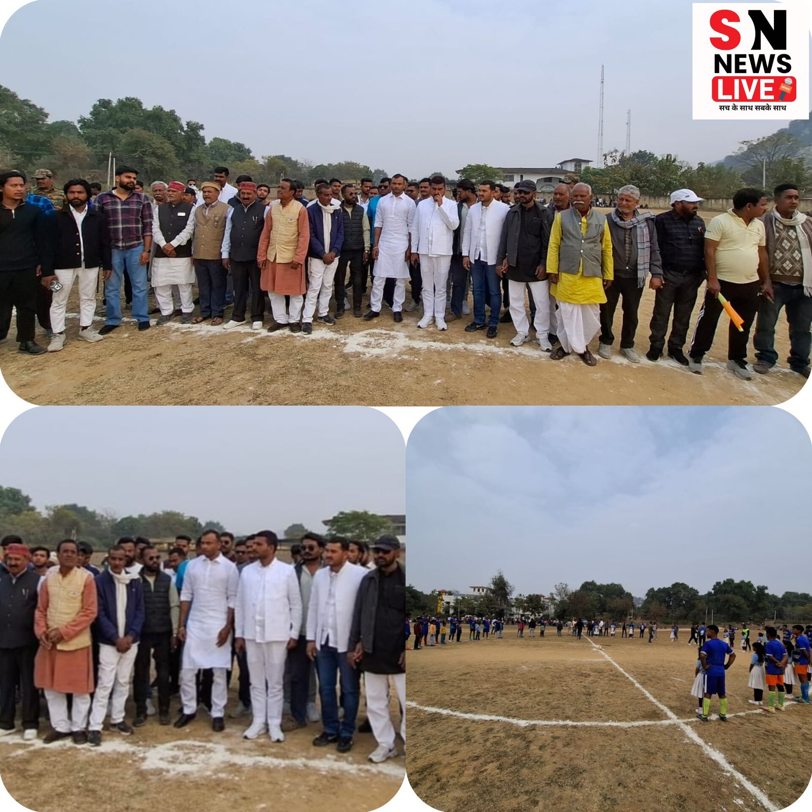 जिसके बाद जन-गण-मन राष्ट्रगान के साथ मैच की शुरुआत हुई। उद्घाटन मुकाबला मिर्जापुर (बिहार) एवं जपला (झारखंड) की टीमों के बीच खेला गया। दोनों टीमों ने शानदार खेल का प्रदर्शन कर दर्शकों का भरपूर मनोरंजन किया। टूर्नामेंट को लेकर क्षेत्र में खेल प्रेमियों में खासा उत्साह देखने को मिला। आयोजन का उद्देश्य युवाओं को खेल के प्रति प्रेरित करना और आपसी भाईचारे व सद्भावना को मजबूत करना है।इस मौके पर झामुमो प्रखंड अध्यक्ष रामबचन बैठा,सांसद प्रतिनिधि महेन्द्र प्रसाद सिंह,सी बी रमण सिंह,नर्वदेश्वर सिंह,भरदुल सिंह,संजय कुमार सिंह,शिवप्रसाद ,आयोजक कमिटी के धीरेंद्र कुमार,विवेक विशाल बंटी, दिलीप कुमार,सनोज कुमार,कवींद्र कुमार,कंचन कुमार सहित काफी संख्या में खेलप्रेमियो ने खेल का आनंद लिया।