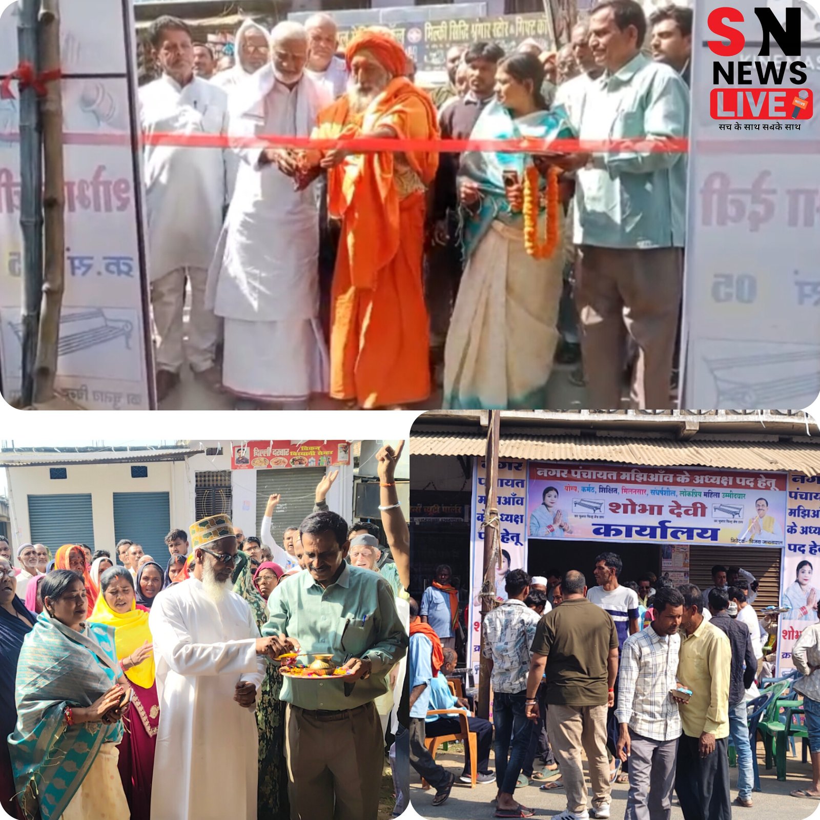 मझिआंव नगर पंचायत के मुख्य बाजार स्थित अपने आवास पर एवं मस्जिद के समीप में रोड पर कार्यालय खोला गया। कार्यालय का उद्घाटन राधा कृष्ण मंदिर के पुजारी श्री श्री 108 श्री बाबा केशव नारायण दास, मस्जिद के मौलाना सिद्दीकी रजा , सहित अन्य लोगों ने उद्घाटन किया। इस दौरान उपस्थित सैंकड़ों पुरूषों एवं महिलाओं ने जमकर नारे लगाए। इसके बाद सभी लोगों को नाश्ता पानी कराया गया और चुनावी चर्चा की गई। इस अवसर पर शोभा देवी ने कहा कि वे नगर पंचायत के विकास के लिए काम करना चाहती हैं और लोगों की समस्याओं का समाधान करना चाहती हैं। शोभा देवी ने अपने चुनाव चिन्ह बेंच पर वोट करने की अपील की।